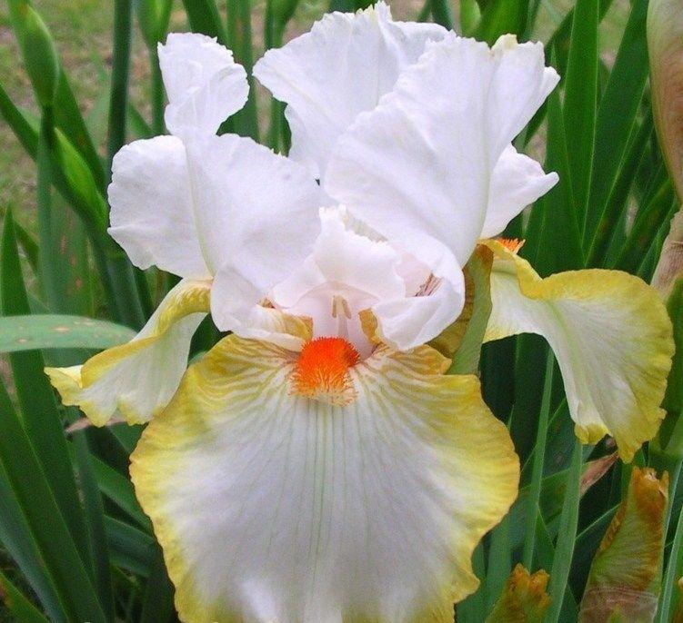 Ирис бородатый хэллоуин хало - это волшебное растение, которое поразит вас своей красотой и изысканностью. Сорт halloween halo привлекает внимание своими белыми цветками с бледно-жёлтой тонкой каймой на нижних лепестках, создавая неповторимый образ в вашем саду. Высота растения достигает до 90 см, что делает его заметным элементом в ландшафте. Листья ириса имеют элегантную форму, придающую растению особый шарм.