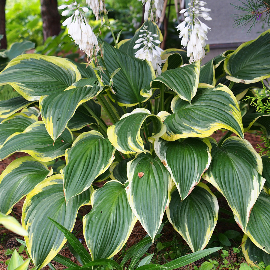 Рассада хосты гибридной Еллоу Ривер (Yellow River) формируется в роскошный куст, который станет украшением любого сада. Сорт отличается:
