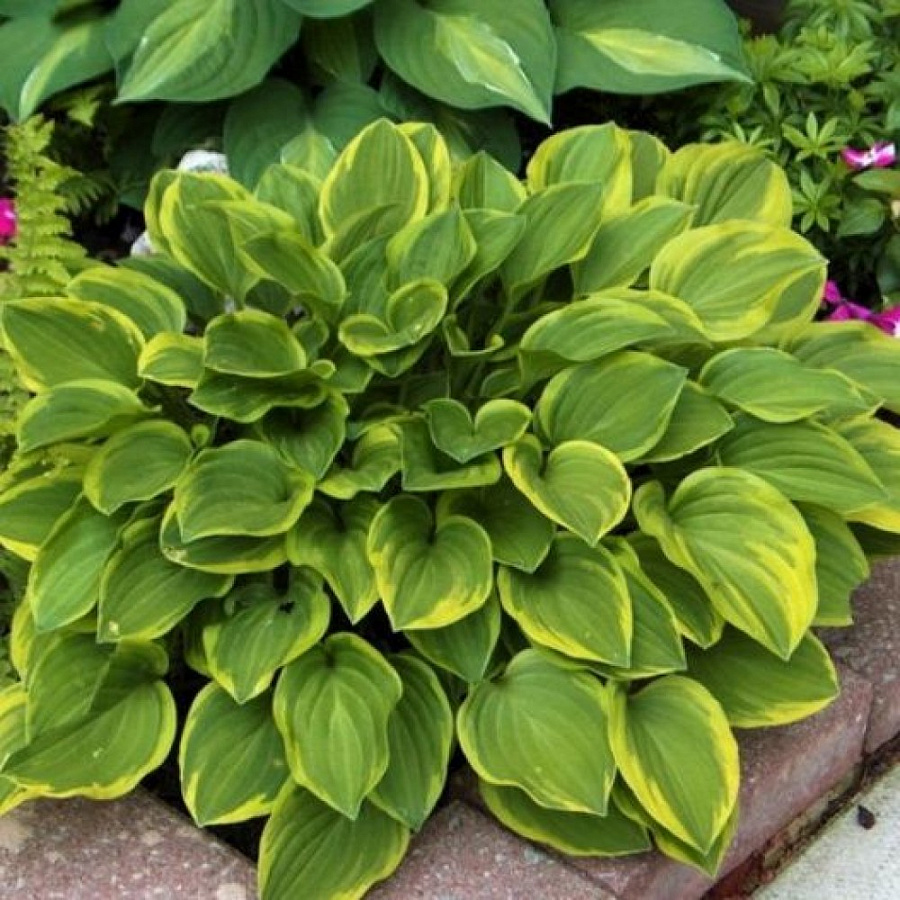 Рассада хосты гибридной Голден Тиара (Golden Tiara), которая представляет собой очень нарядный сорт, приживается во многих регионах. Листья крупные, сердцевидной формы насыщенного зеленого цвета с широкой кремово-желтой каемкой по краям. Цветет лавандовыми колокольчиками, которые образуют соцветия на концах высоких тонких стеблей.