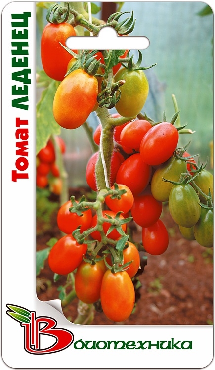 Семена томата "Леденец" (Ledenetc) высевают на рассаду в конце марта. На постоянное место высадку проводят в мае. В зависимости от способа выращивания высота растения варьируется от 40 до 100 см. Первые плоды можно начинать в середине июля. К середине августа происходит массовая отдача урожая. Плоды овальной формы, красного цвета, весом 40-50 грамм. На одном кусте может созреть до 60 помидорок. Они отличаются отличными вкусовыми характеристиками, слегка сладковатые. Универсальны в использовании, подходят для потребления в свежем виде, кулинарии и консервировании.
