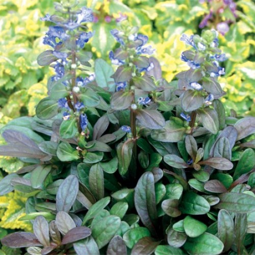 Саженцы живучки ползучей Мини Махагони (Mini Mahagoni) ценятся за необычный вид и простой уход. Этот многолетник используется в качестве почвопокровника для заполнения пустующих участков сада и мест под деревьями и кустарниками. Для этого сорта характерна зеленовато-пурпурная окраска кожистых листьев, на фоне которых весной распускаются яркие синие цветы. Высота живучки не превышает 15 сантиметров. Этот сорт легко адаптируется к любому типу почвы, но предпочитает затененные места. Растение обладает морозоустойчивостью и не нуждается в зимнем укрытии.